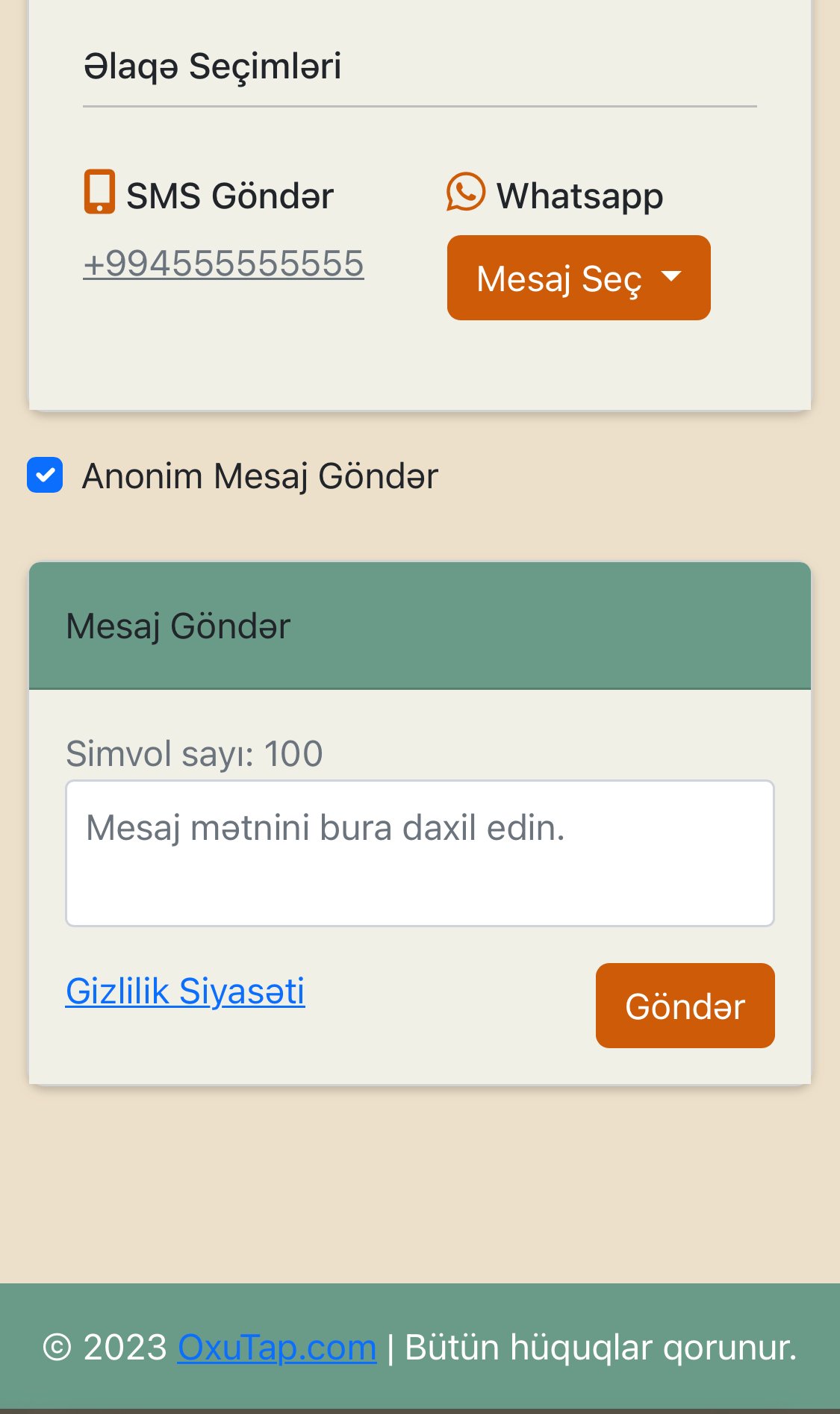 Həm bəylər, həm də xanımlar üçün uyğundur. Siz istənilən zaman şəxsi məlumatlarınızı deaktiv edə bilər və yalnızca Anonim mesaj funksiyasını aktiv edə bilərsiniz